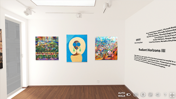 Radiant Horizons brings together 92 artists from around the world in a celebration of creativity, diversity, and shared vision. Presented across three virtual halls, the exhibition reflects the luminous breadth of contemporary art and the boundless connections it inspires.